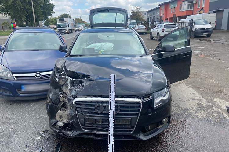 Перша автопригода сталася близько 12:15години на вулиці Підволочиське шосе. Не розминулися автівки Opel та Audi A4. Правоохоронці встановили, що водій автомобіля Opel почав повертати у забороненому місці. Чоловік не переконався в безпечному русі і як результат – у нього врізалася Audi A4, яка їхала своєю смугою.