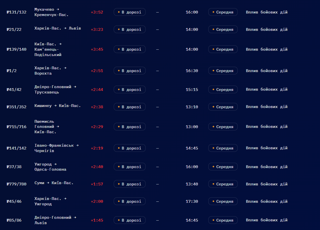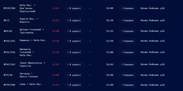 Пасажири можуть відстежити актуальну інформацію про рух потягів на офіційному сайті перевізника.