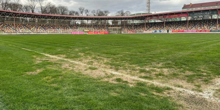 Комісія зафіксувала: газон стадіону у незадовільному стані. Витоптані та оголені ділянки, бур’яни, ущільнений ґрунт, відсутність будь-якого догляду. Біля воріт – болото. На момент передачі в оренду газон був у задовільному стані – це зафіксовано документально.