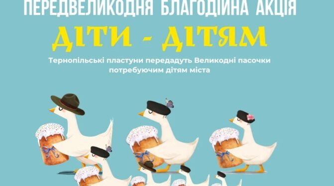 Тернопільські пластуни сьомий рік поспіль запрошують жителів міста долучитися до передвеликодньої благодійної акції “Діти – дітям”. До 9 квітня включно можна принести паску для дітей із малозабезпечених родин.