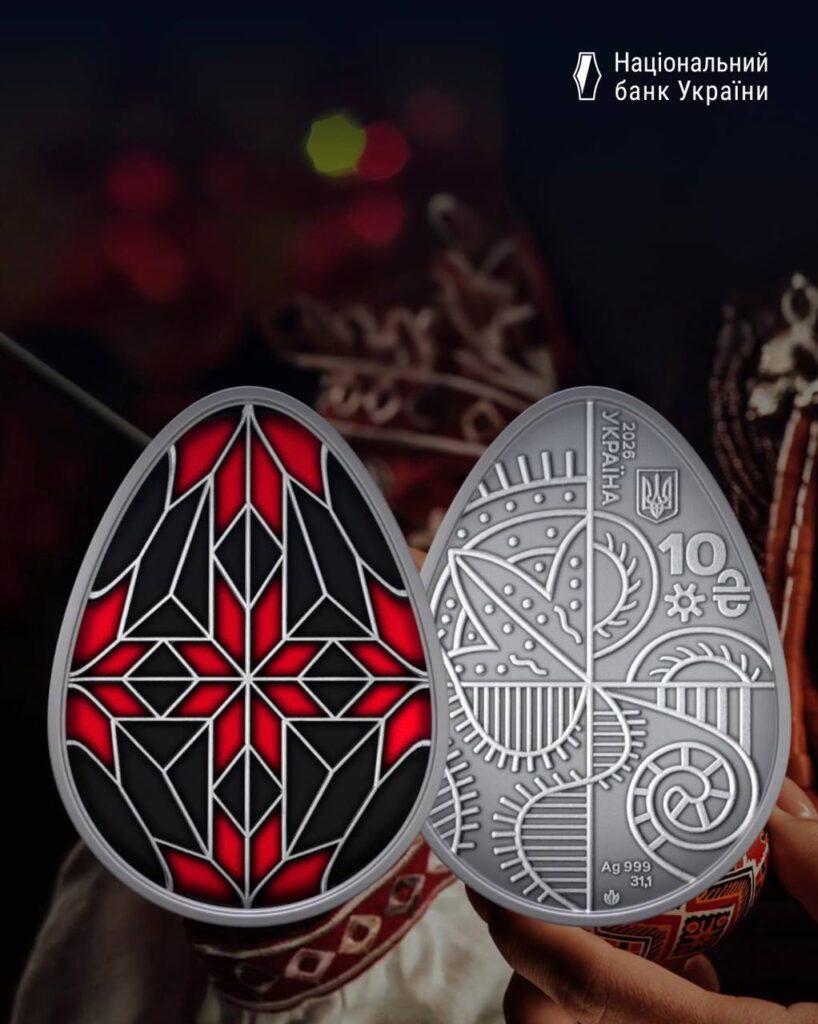 Національний банк України випустив нову пам’ятну монету у формі писанки, присвячену поліським традиціям. Срібна монета номіналом 10 гривень відображає орнаменти чотирьох регіонів Полісся.