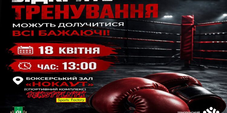 У Тернополі 18 квітня відбудеться відкрите тренування з боксу в залі “Нокаут”. Взяти участь можуть усі охочі, але потрібна обов’язкова реєстрація.