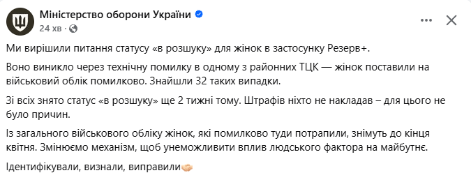 Проблема виникла через технічну помилку в одному з районних територіальних центрів комплектування. Жінок поставили на військовий облік помилково, що автоматично надало їм статус “в розшуку”.