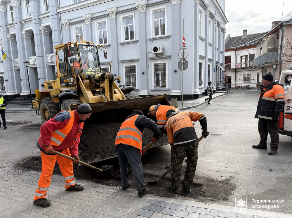 На вулиці Леся Курбаса спеціалісти готують ремонтні карти за допомогою великої фрези. Тим часом на Микулинецькій укладають новий асфальт. Також заплановані роботи з ямкового ремонту на Майдані Волі, вулицях Листопадовій та Сергія Качали.