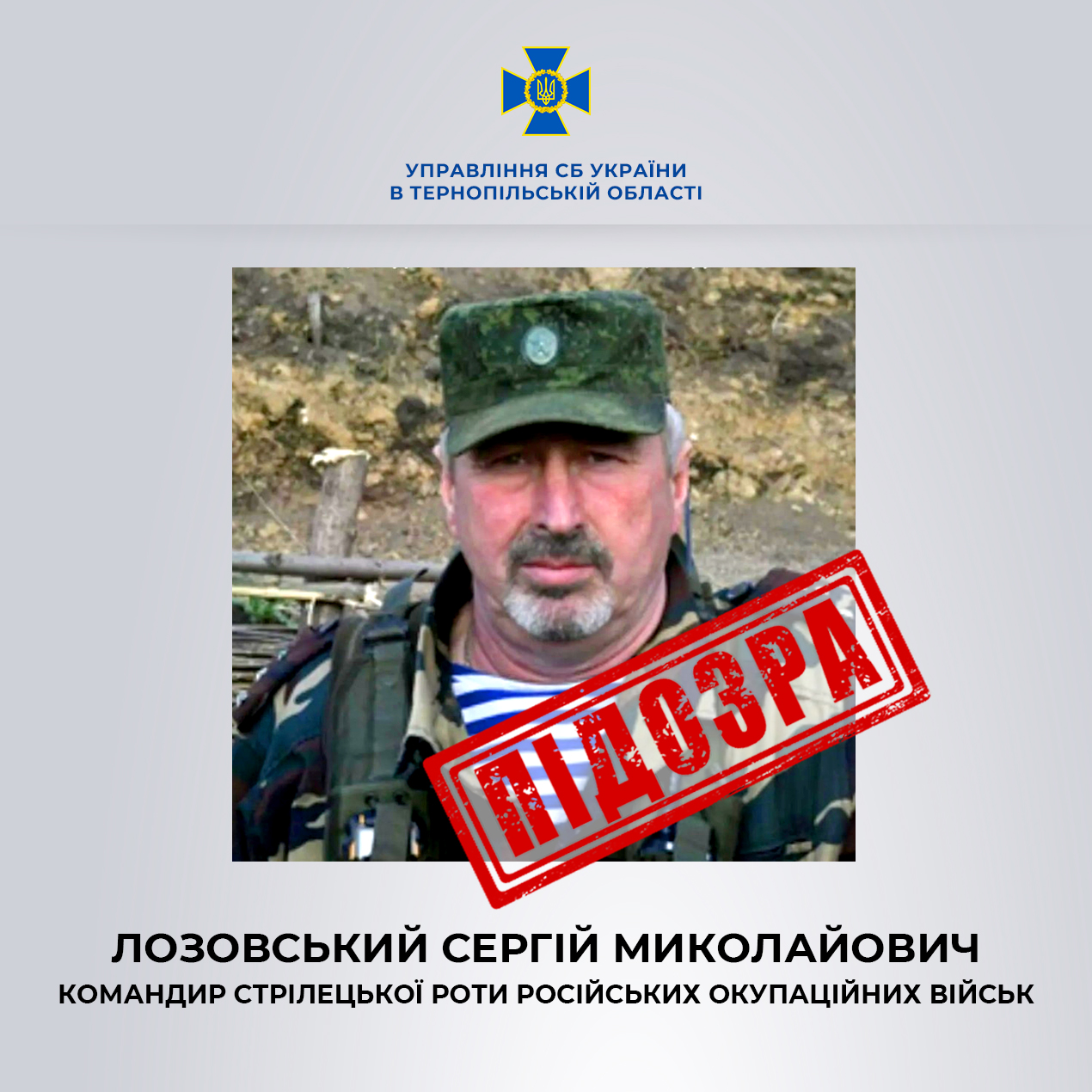 СБУ на Тернопільщині повідомила про заочну підозру 57-річному жителю Донеччини, який воює на боці російських окупантів.