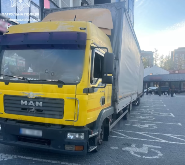 У Тернополі водій вантажівки MAN заблокував шість паркомісць для людей з інвалідністю на вулиці 15-го Квітня. Порушника притягнули до адміністративної відповідальності.