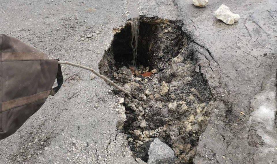 Наразі дорожній дефект обгороджують, аби ніхто туди не впав і не в’їхав.