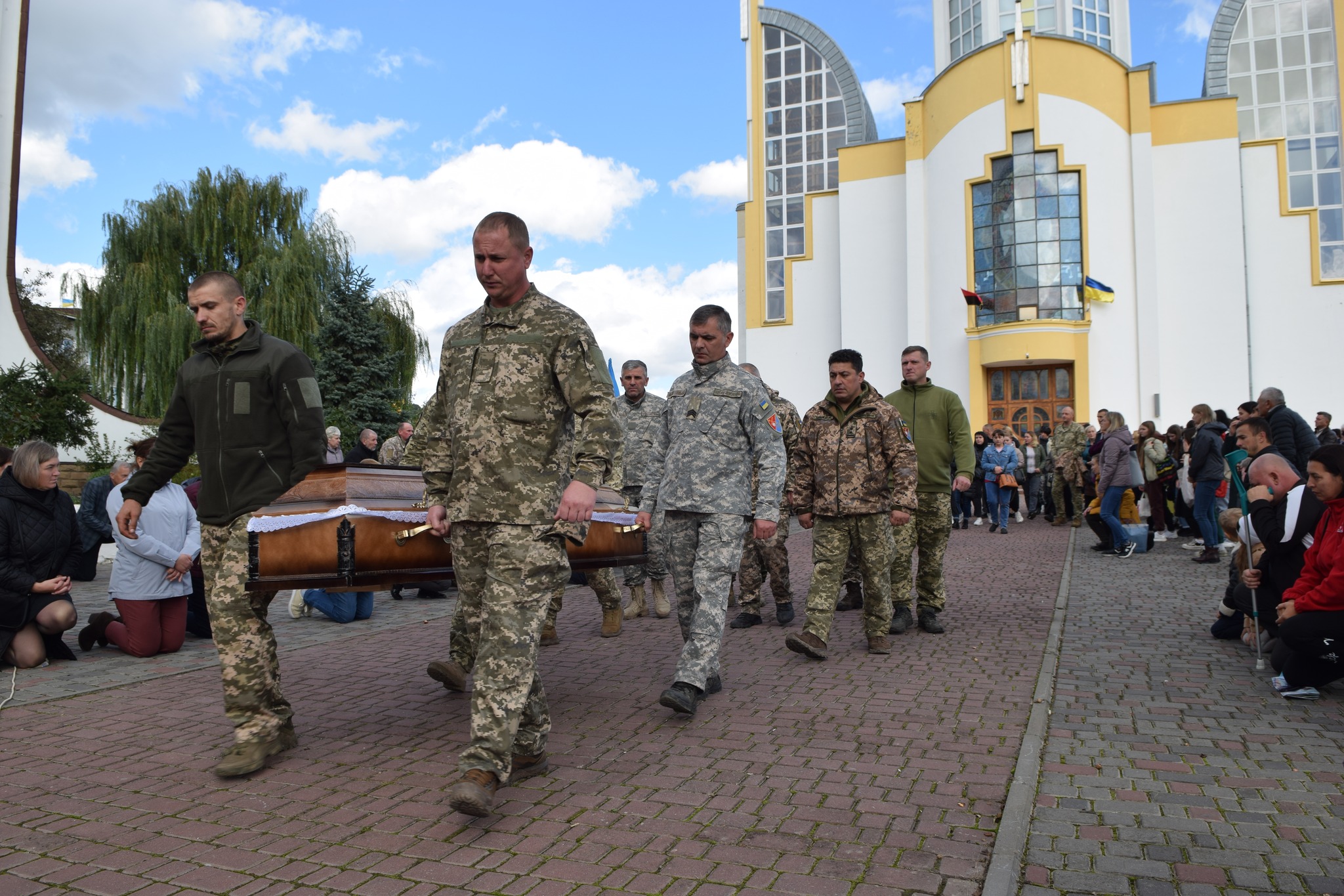 Сьогодні, 28 вересня, у Чорткові зустрічали загиблих бійців. Люди, стоячи на колінах, плакали гіркими сльозами.