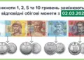 Із 2 березня 2026 року банкноти номіналами 1, 2, 5 та 10 гривень замінюються на відповідні обігові монети