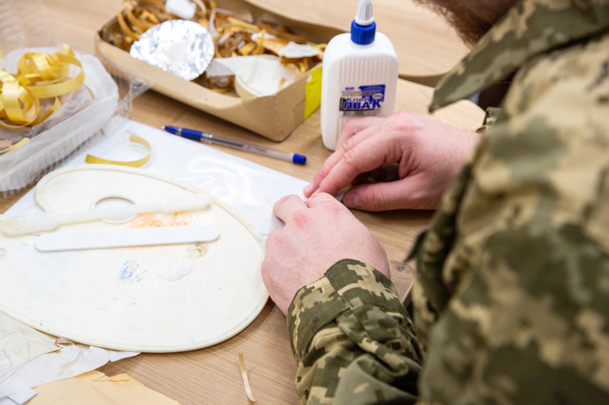 Учасники арттерапевтичної сесії створювали аплікації, символічно відпускаючи напругу та зцілюючи внутрішні переживання. Такий формат допомагає відкрити нові джерела спокою та натхнення, коли словесне вираження почуттів стає надто складним.