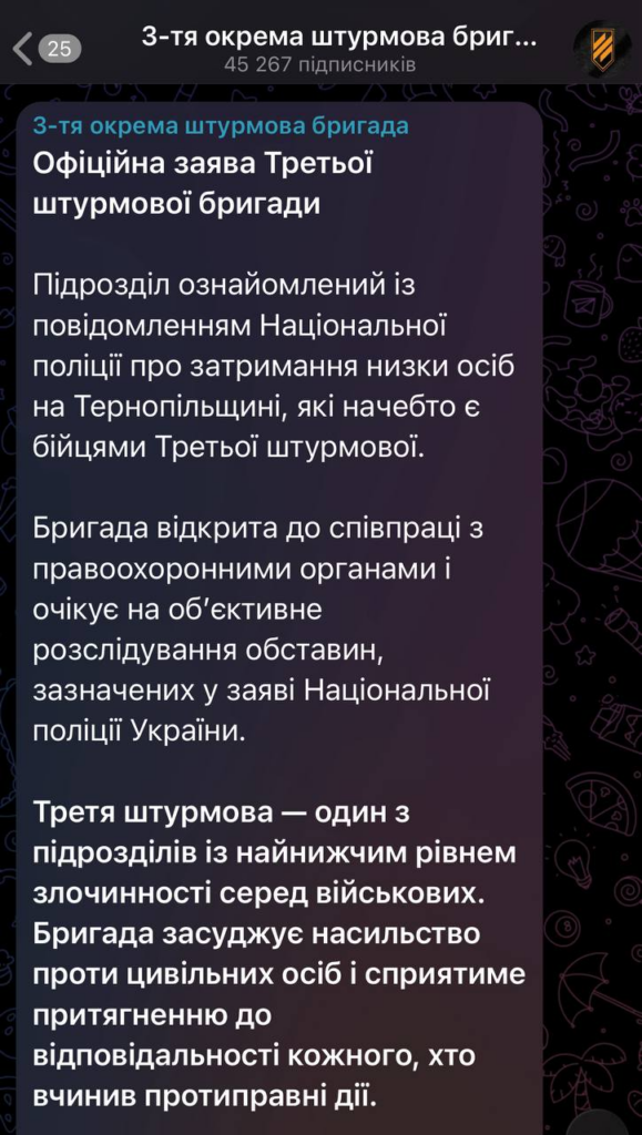 У деяких місцевих ЗМІ та соцмережах поширювалась інформація, що затримані належать до 3-ої окремої штурмової бригади. Бригада відреагувала того ж дня офіційною заявою: вони готові співпрацювати і чекають на об’єктивне розслідування.
