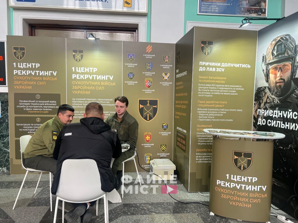 Від 27 жовтня у головному холі Залізничного вокзалу Тернополя можна пройти добровільний рекрутинг у Сухопутні війська ЗСУ, обравши корпус та посаду. Офіс представництва працюватиме щодня з 8 до 18 години.