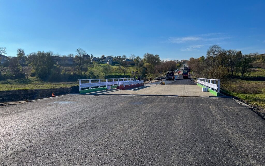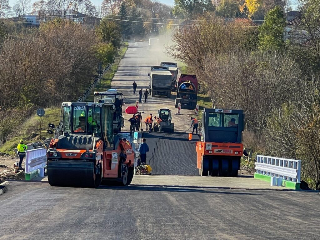 На державній дорозі Р-43 у Тернопільській області фінішують роботи з відновлення мосту в Чернихівцях. Дорожники активно укріплюють основу та влаштовують шари покриття на підходах до нової споруди.