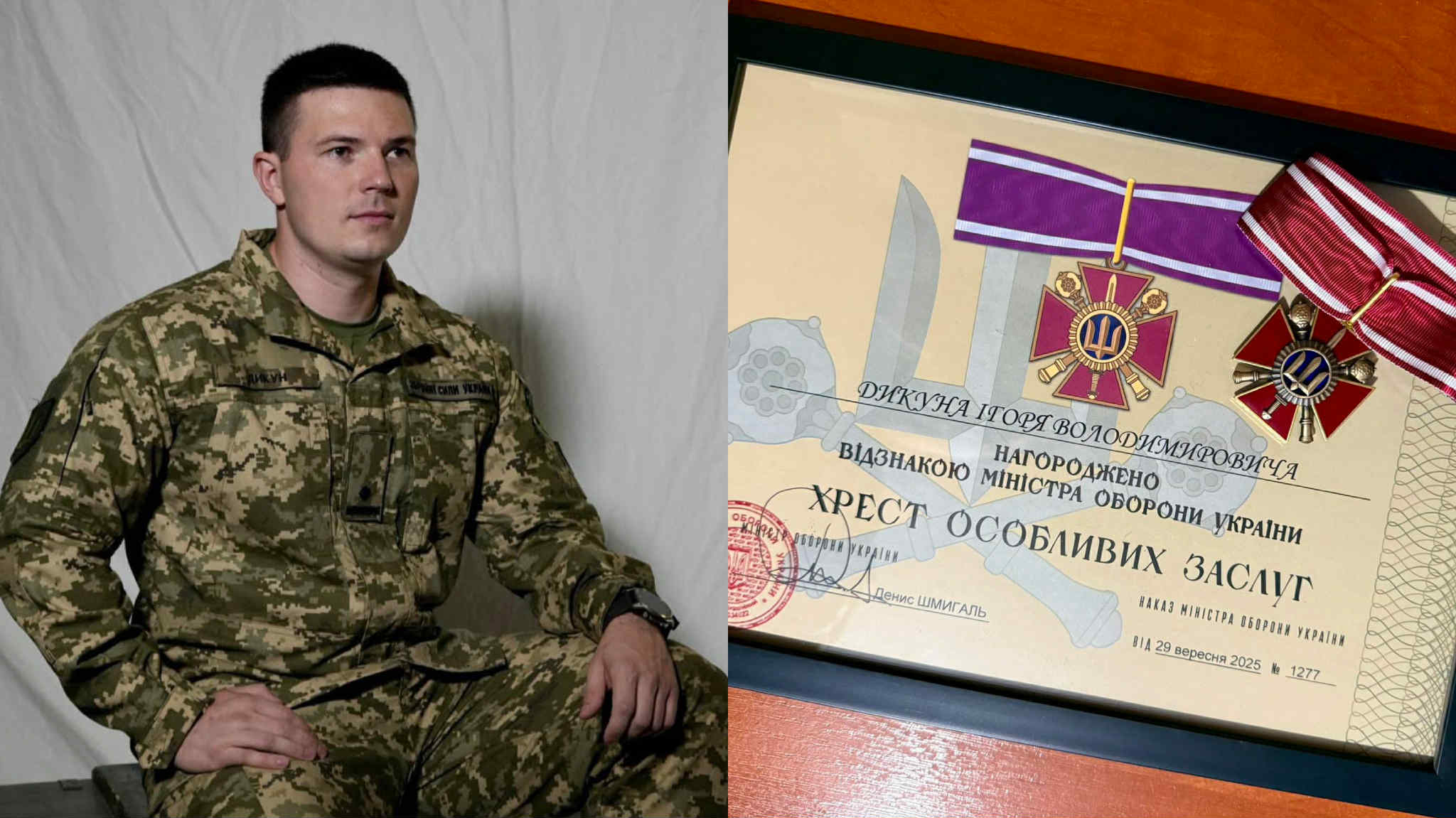 Герой України з Тернополя Ігор Дикун отримав високу відзнаку від Міністерства оборони – Хрест особливих заслуг. Нагорода присуджується за визначні досягнення у зміцненні обороноздатності України.