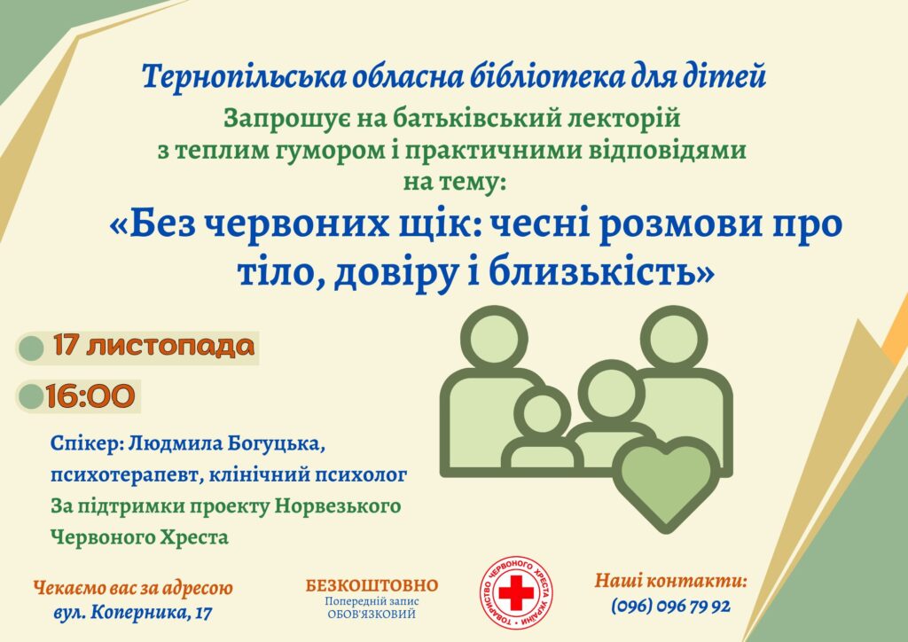 У Тернопільській обласній бібліотеці для дітей проходять психологічні бесіди про сексуальне виховання. Учасники можуть дізнатися як побудувати довіру з дітьми і говорити про цю тему без ніяковості.