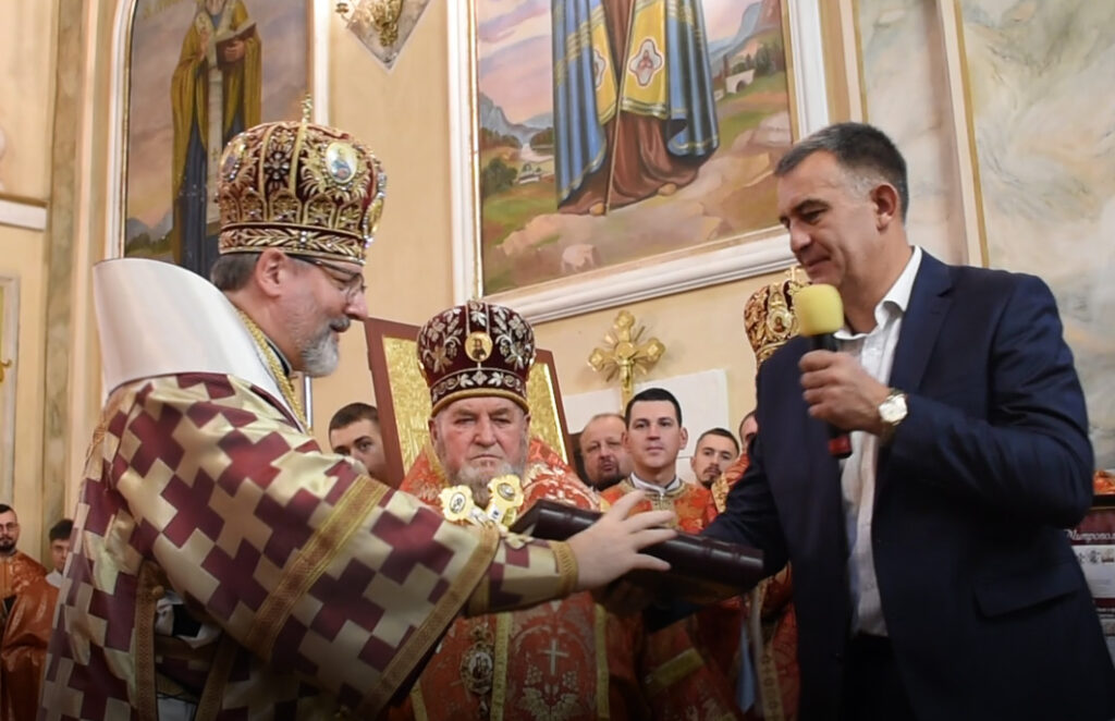 Бучацький міський голова Віталій Фреяк привітав Митрополита та передав йому ексклюзивний примірник перевиданого “Бучацького Євангелія” на знак вдячності від громади.