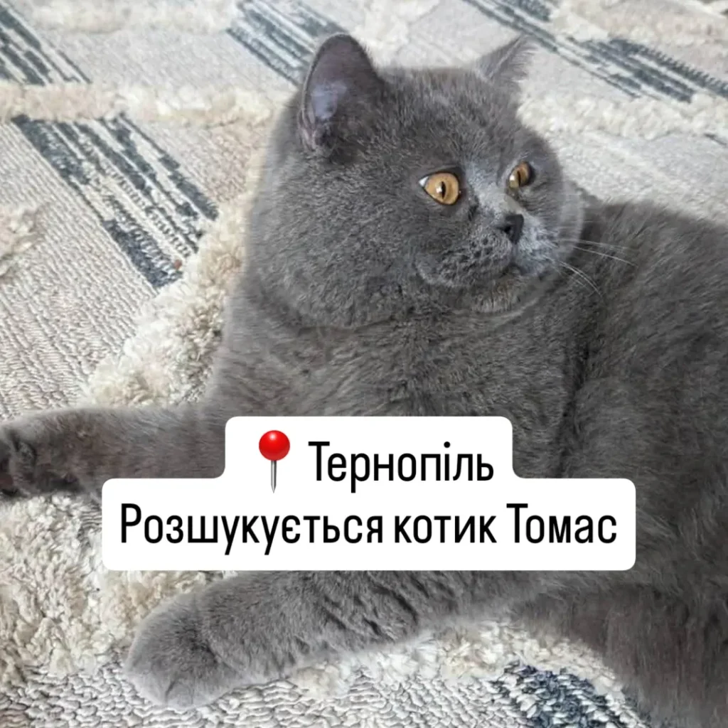 Під час удару в будинок на 15 квітня наляканий котик Томас вибіг із квартири. Господарі досі його шукають. Контакти: 0962110688, 0672936635.