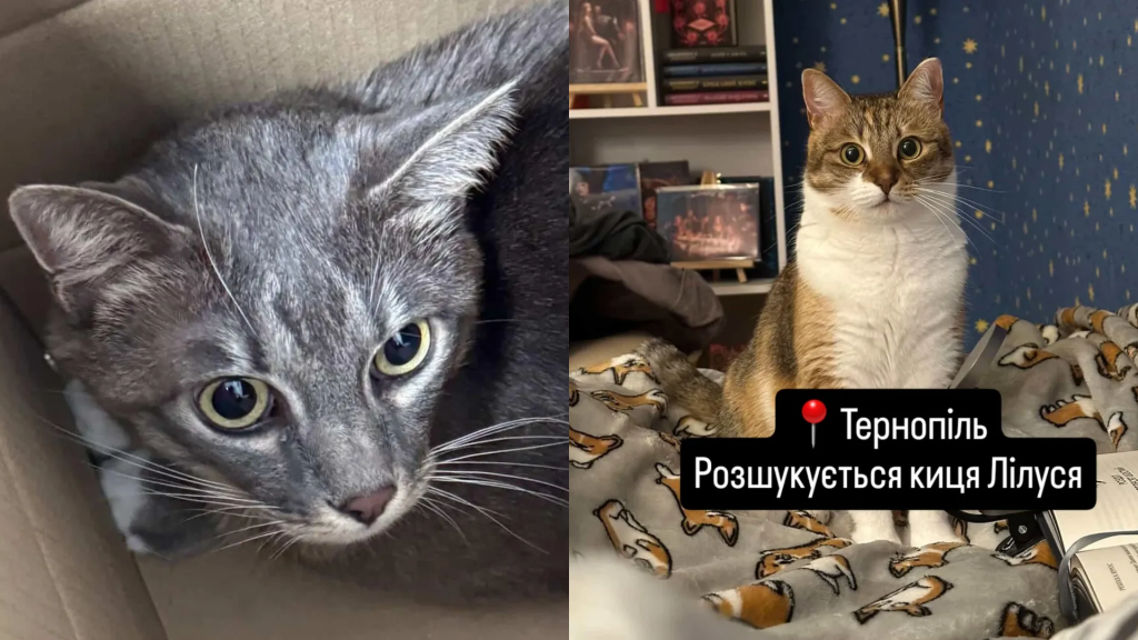 На вулиці 15 квітня знайшли сірого домашнього кота, наляканого, всього у диму. Зараз він перебуває у зооготелі Пет Гарден. Тернополян просять поширювати інформацію, можливо власники живі і шукають його.