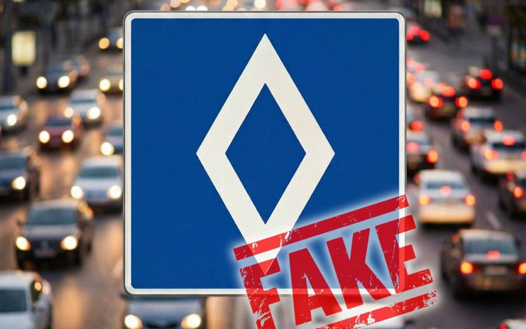 В українських соцмережах поширюється фейкова інформація про новий дорожній знак — “білий ромб на синьому фоні”. Насправді такого знака в Правилах дорожнього руху України не існує.