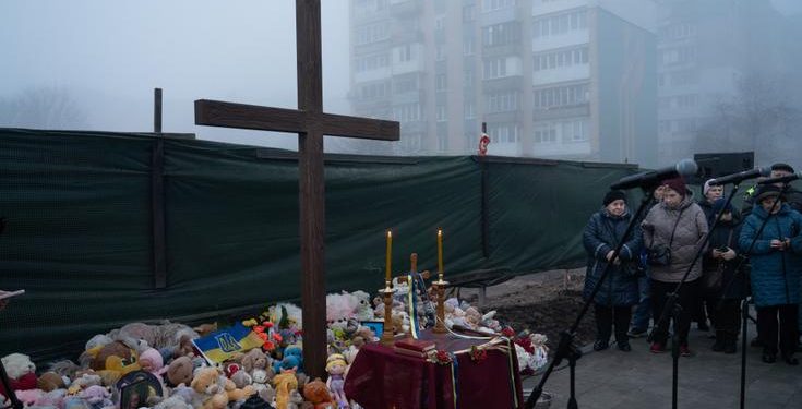 У Тернополі освятили пам’ятний хрест на місці російського ракетного удару 19 листопада, де загинуло 38 людей. Освячення провели через місяць після трагедії на вулиці Василя Стуса, 8.