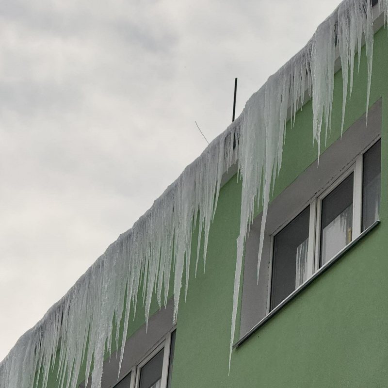 У Тернополі масово утворюються бурульки через різкі перепади температур. Управляючі компанії та ОСББ мають негайно ліквідувати небезпечні льодові нарости на дахах будинків.