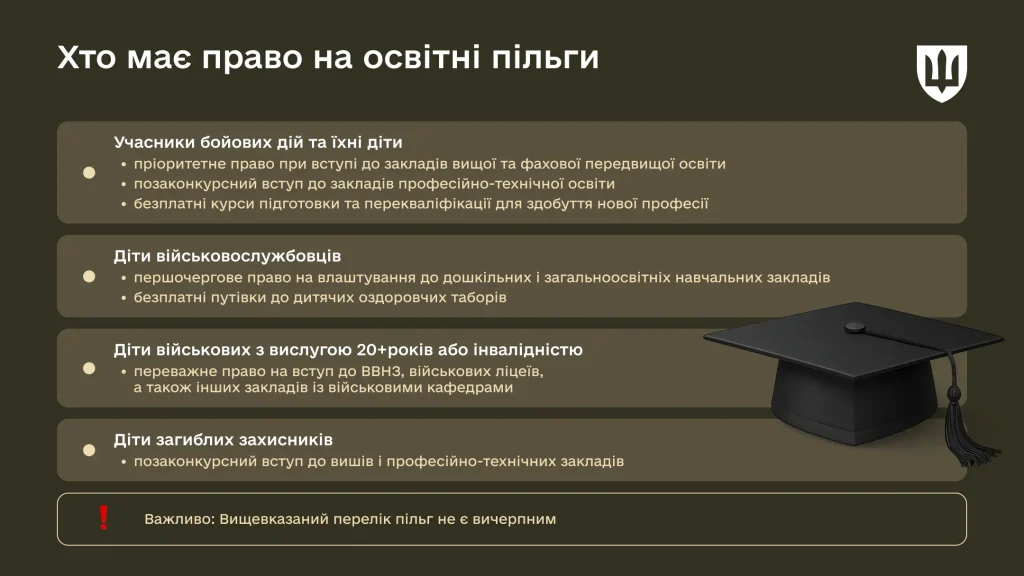Освітні пільги для військових та їхніх дітей у 2026 році: що важливо знати