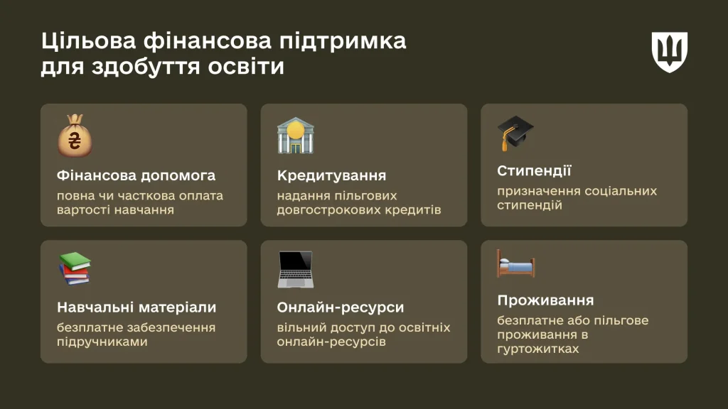 • Молоді військові (18–25 років) без вищої освіти можуть здобувати освіту за визначеним порядком.