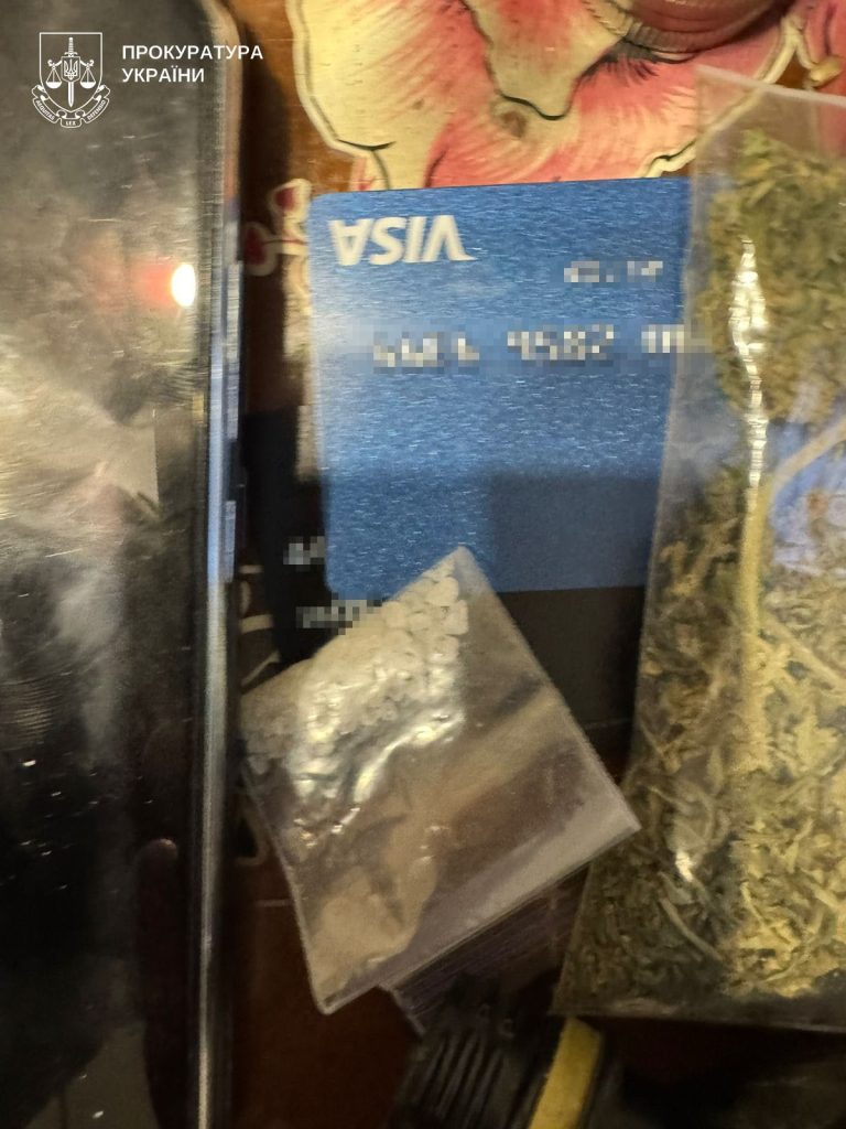 • У першого підозрюваного: пакети з канабісом та білою кристалічною речовиною.
