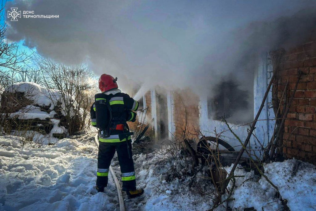 Того ж дня у Гримайлівській територіальній громаді Чортківського району сталася масштабна пожежа. Загорілася господарська будівля, однак вогонь швидко поширився та знищив житловий будинок. Площа пожежі становила близько 50 квадратних метрів. Унаслідок надзвичайної події опіки отримав 76-річний чоловік, якого було госпіталізовано.