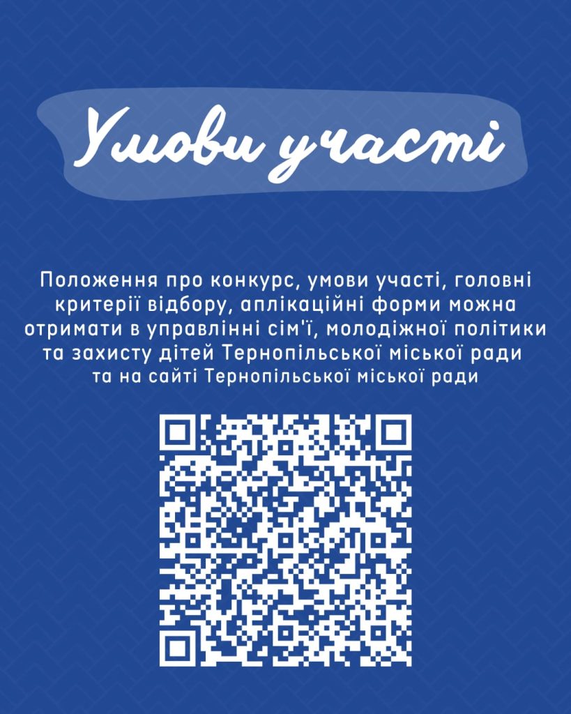 Детальну інформацію про умови участі та критерії відбору можна отримати за телефоном 0981820208 або на офіційному сайті Тернопільської міської ради.
