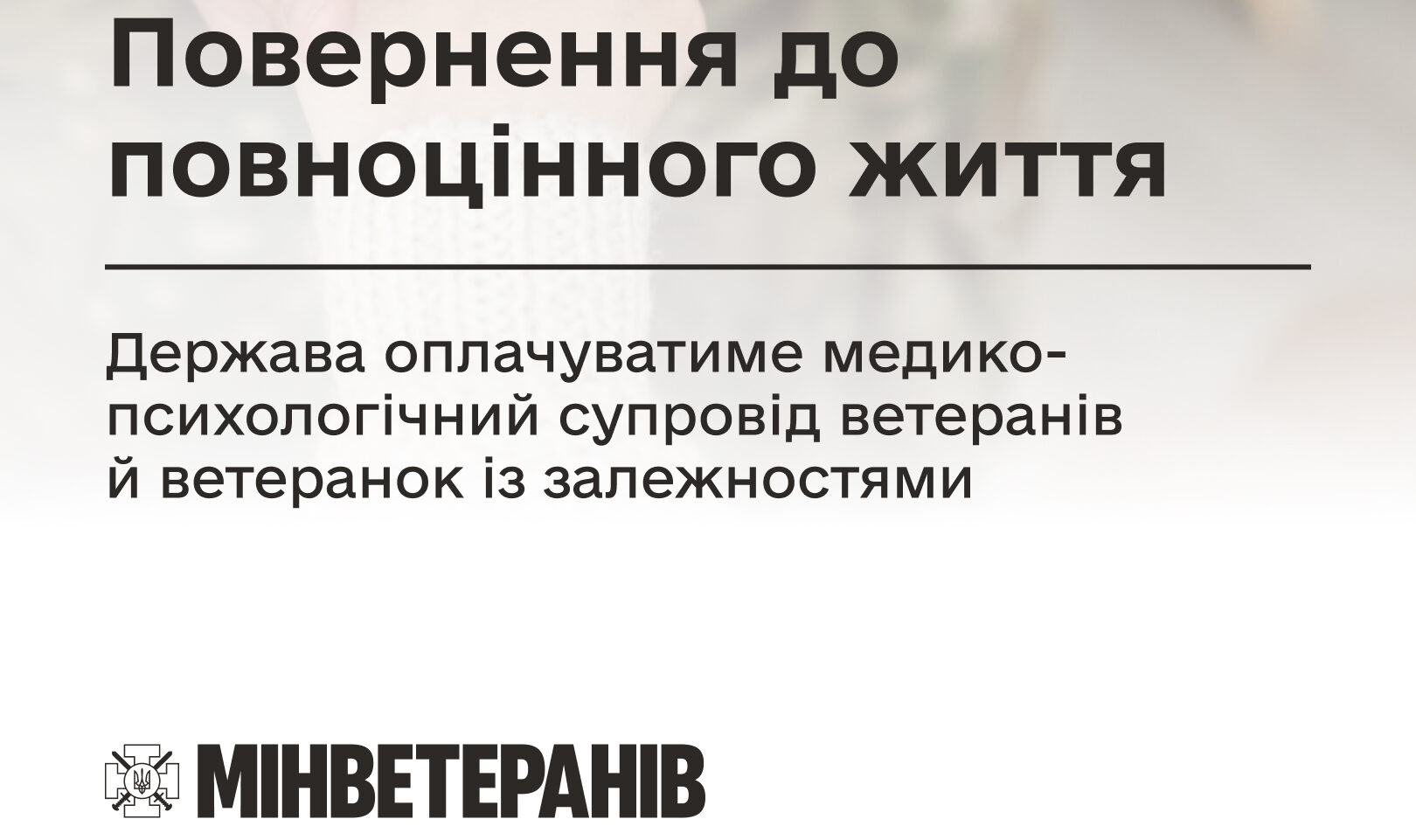 Держава запускає пілотний проєкт медико-психологічної підтримки для ветеранів із залежностями. Програма включає 30 днів стаціонарного лікування та майже рік амбулаторного супроводу.