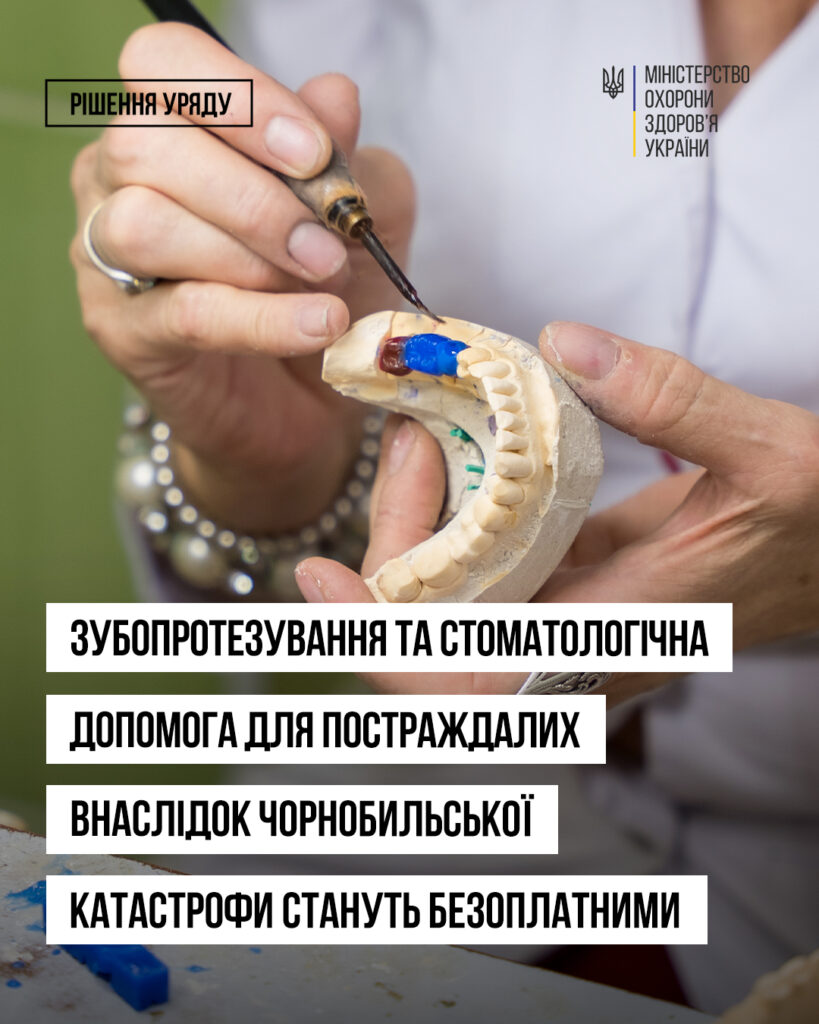 Уряд розширив доступ до безкоштовного зубопротезування та стоматологічної допомоги для постраждалих від Чорнобильської катастрофи. Тепер право на ці послуги мають люди з інвалідністю внаслідок аварії на ЧАЕС та хворі на променеву хворобу.