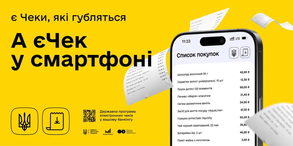 В Україні запустили єЧек — державну програму електронних чеків у банкінгу. Пілотний проект вже працює у чотирьох банках та трьох торговельних мережах.