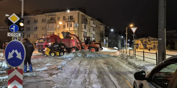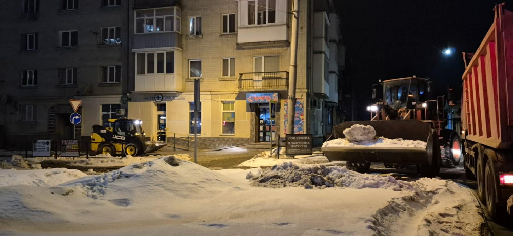 У ніч з 20 на 21 лютого підрядники очищали від снігу вулиці Софії Стадникової та Торговиця. Робота велася на ділянці від Оболоні до Микулинецької, а також на транспортній розв’язці біля вулиць Князя Василя Костянтина Острозького. За цю ніч вдалося вивезти близько 750 кубометрів снігу.