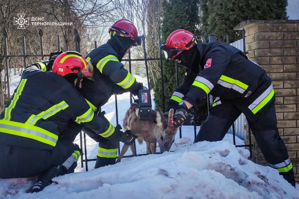 У Тернополі рятувальники звільнили косулю, яка застрягла в металевій огорожі на вулиці Новий Світ Бічна. Травмовану тварину передали до реабілітаційного центру у Львові.