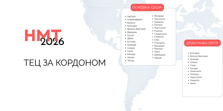 Українські абітурієнти за кордоном зможуть складати НМТ-2026 у 30 країнах світу. Тестування відбудеться в спеціально обладнаних центрах із українськомовними педагогами.
