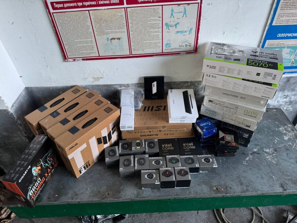 Однак під час огляду митники виявили справжню скарбничку електроніки: сім ноутбуків ASUS, ACEMAGIC, MSI, GIGABYTE, десять смарт-годинників GARMIN, десять процесорів AMD та INTEL, чотири планшети SAMSUNG, три телефони XIAOMI та SAMSUNG, а також сім відеокарт і материнську плату.