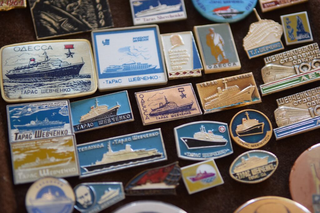 Найстаріший значок датується 1914 роком. Є унікальні експонати з Одещини у формі кораблів, “байкерські” металеві та дерев’яні варіанти. Деякі речі чоловік шукав 40 років. Особливо цінні ті, що їх надсилав колекціонер з Донеччини під час АТО – щоб зберегти від знищення.