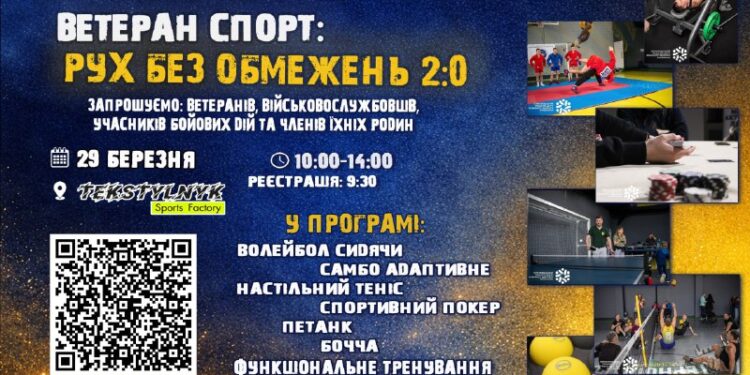 У Тернополі 29 березня відбудеться День спортивних майстер-класів для ветеранів та їхніх родин. Захід пройде у “Текстильник Sports Factory” з 10:00 та об’єднає сім різних видів адаптивного спорту.