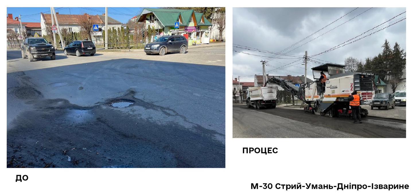 У Бережанах розпочали капітальний ремонт дороги державного значення М-30 Стрий – Умань – Дніпро – Ізварине. Рух транспорту тепер здійснюється у реверсному режимі.
