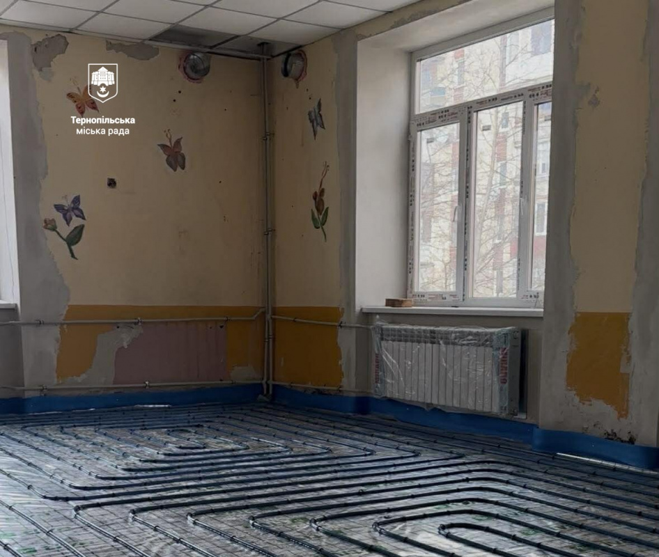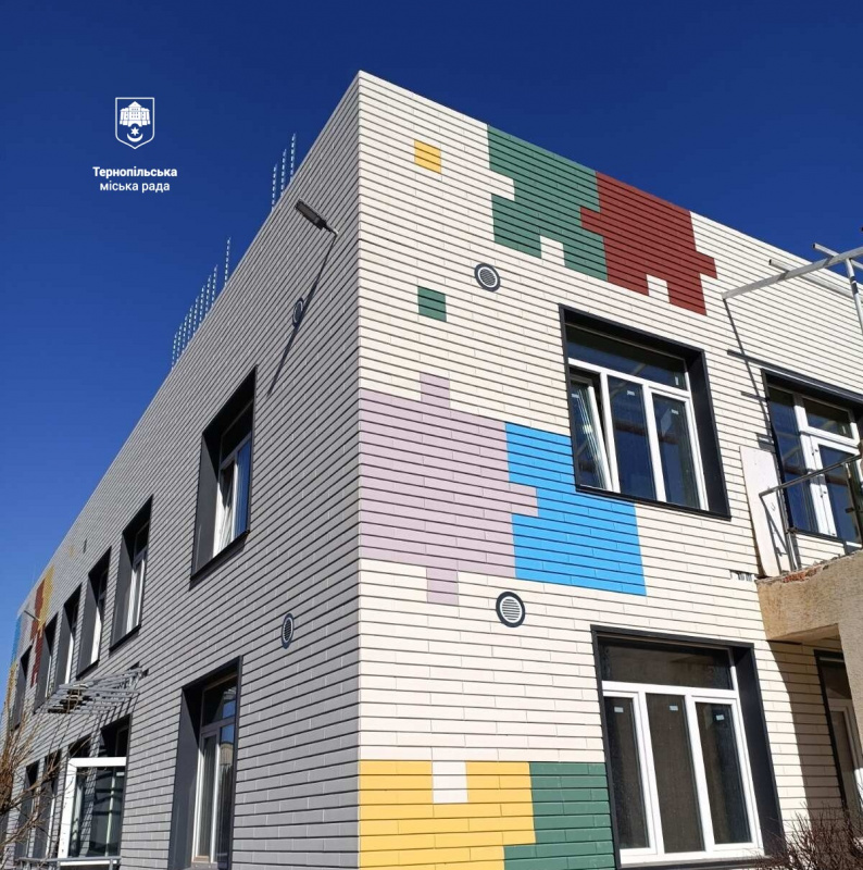 У Тернополі оновлюють садочок №21 на вулиці Князя Острозького. Будівля вже отримує яскравий сучасний фасад, а всередині монтують теплу підлогу та нову систему опалення.