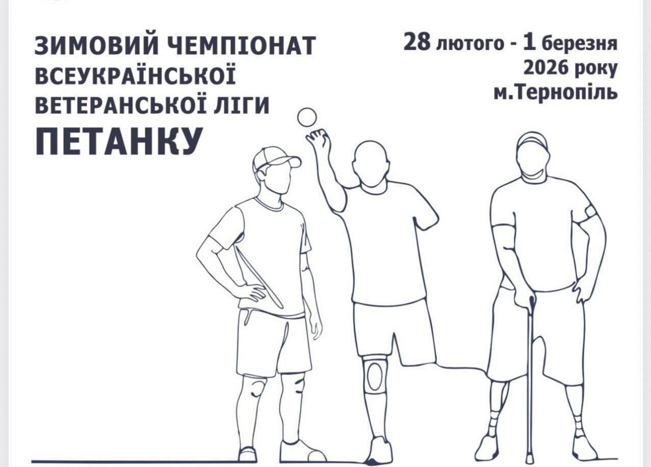 У Тернополі пройде масштабний турнір з петанку серед ветеранів війни та родин Героїв. 96 учасників з усієї України змагатимуться за “Кубок Чемпіонів петанку серед ветеранів ВВЛП 2026” 28 лютого – 1 березня 2026 року.