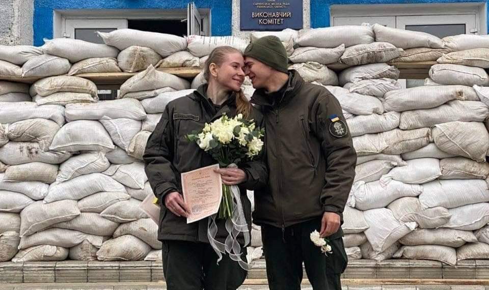 Щиро вітаємо молодят! Нехай їх подружжя не розлучить війна, а життя буде під мирним небом над головою.